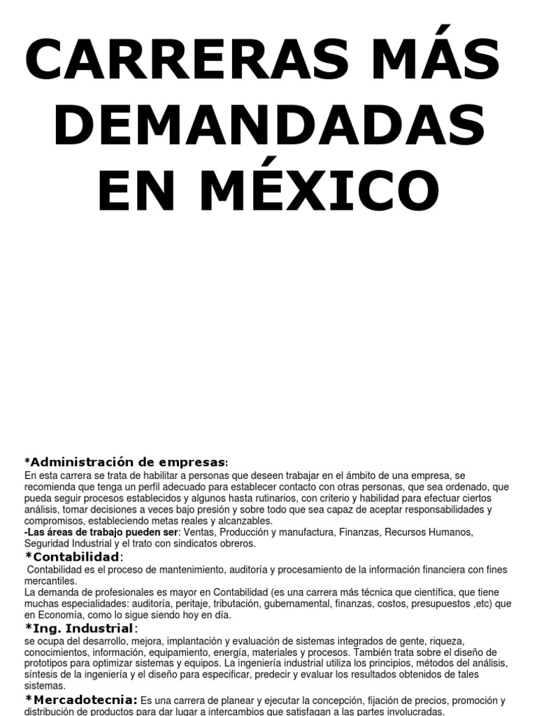 Carreras mas populares en mexico Indeed recently has been sought by consumers around us, maybe one of you. People now are accustomed to using the internet in gadgets to view image and video data for inspiration, and according to the title of the article I will talk about about Carreras Mas Populares En Mexico.