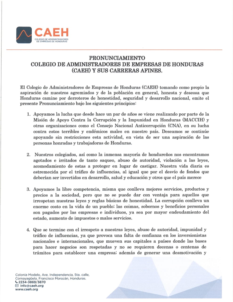 O Xrhsths Cna Honduras Sto Twitter Importante Colegio De Administradores De Empresas De Honduras Caeh Y Sus Carreras Afines Dan Su Respaldo Al Cna Y La Oea Maccih Y Hacen Un Llamado Para Carreras Clandestinas En Zapopan